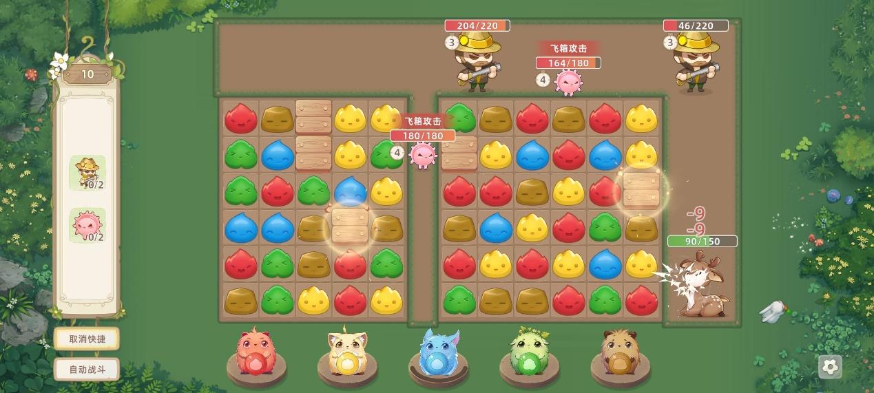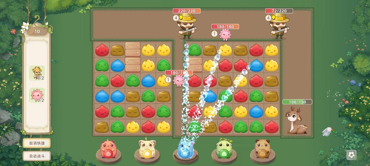 消除色块会对偷猎者造成伤害,三消以上不仅会合出花弹,还会对敌人造成额外的暴击伤害,在敌人附近消除或者是引爆花弹更是能给敌人送上沉重一击,覆盖格子越多伤害越高,需要注意的是!花弹没有炸到敌人伤害还不如一个三消的伤害哦。消除色块除了造成伤害还会并肩作战的精灵们进行充能,能量足够可以释放专属技能打击敌人。