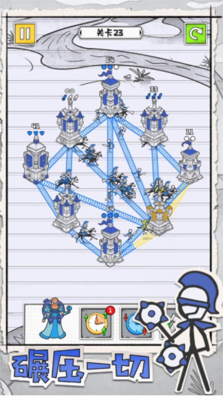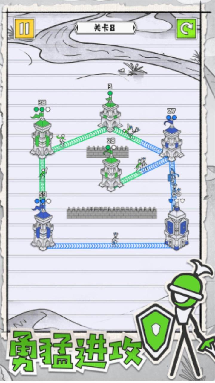 进化高级:当城堡到达高分时,会将接收的火柴人士兵派发出去