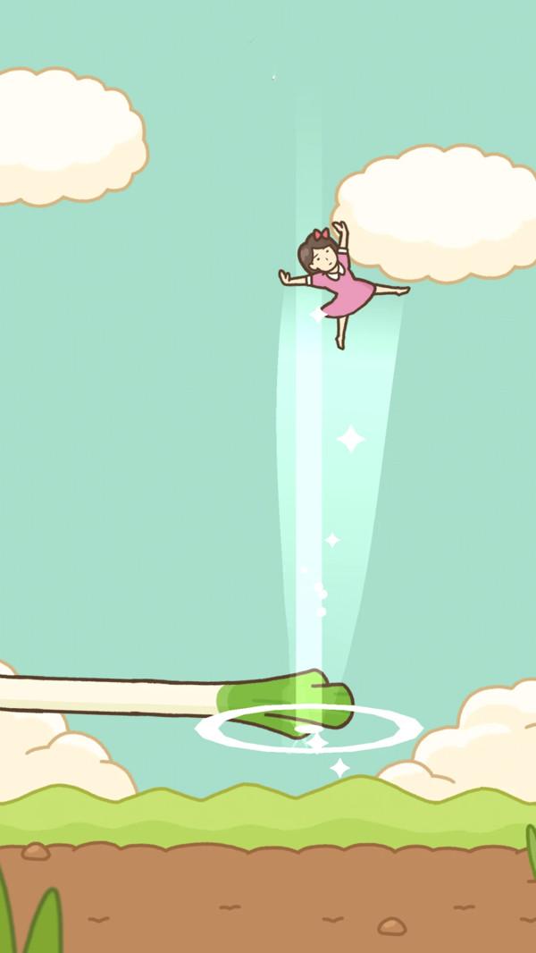 大葱女孩游戏中玩家们将会操控的是一个非常可爱的豆腐少女,游戏的玩法非常的简单,你需要利用大葱的弹力来进行不断地冒险和跳跃来进行闯关,不断地让少女来不断地往上进行弹射来获得积分。