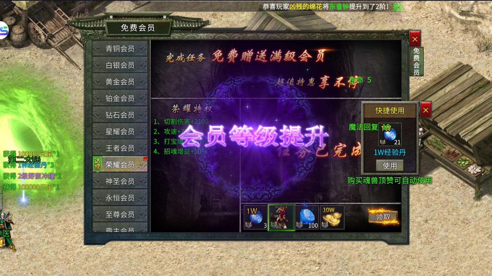打怪升级领红包,登录就送vip,升级就有红包豪礼,整点红包雨,让你玩赚传奇。