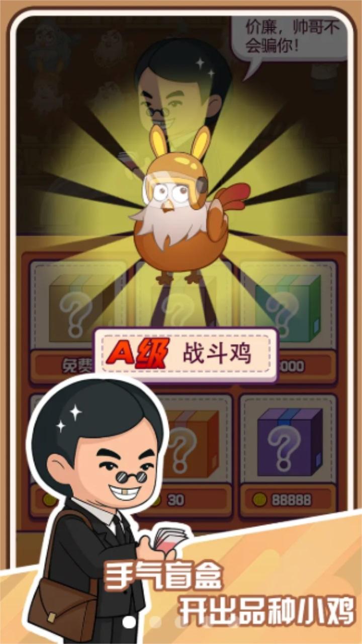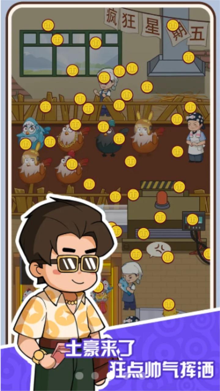 趁热炸个鸡是长沙元域网络科技有限公司打造的一款放置模拟经营的游戏,最近超火爆的解压休闲小游戏,一玩就停不下来!要想鸡场办得好,优质小鸡不能少,咱们先去商店抽个盲盒,一定要抽最贵的,最好抽到高级小鸡,然后生蛋效率杠杠的,一下子就会孵化出很多小鸡,就可以拿到厨房炸了,然后售卖给到店的客人。