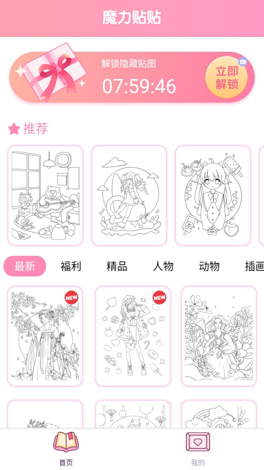 魔力贴贴是一款非常好玩的休闲贴图游戏,这款游戏玩起来十分的解压,和经典的涂色游戏很相似,但是操作上更为简单,玩家只需要将屏幕下方的贴纸正确的放在上方的图案中即可,很快就能得到一幅精美的作品,另外游戏内有各种贴图风格可以选择,比如人物、风景和动物等等;