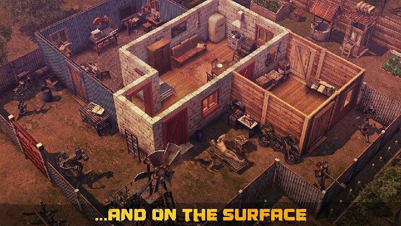 1.打造你的专属基地,捡有用的生存物资和枪支弹药来竞争。