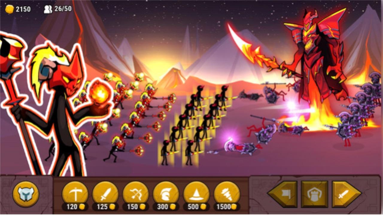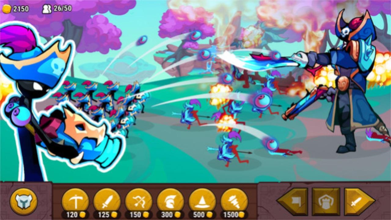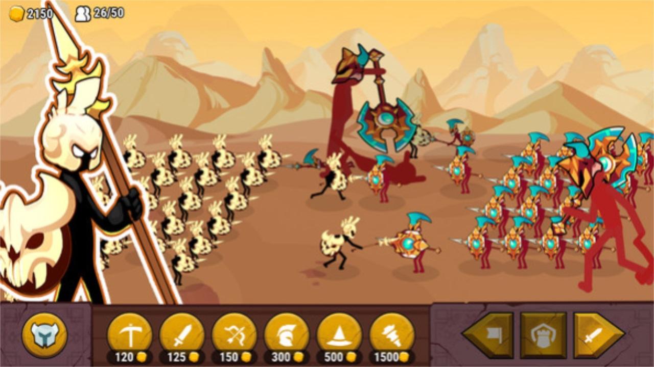 开采黄金,建立你的部队,并学习控制剑客、长矛兵、弓箭手、法师和巨人棍棒 建立自己的火柴人军队,成为火柴人战斗的冠军,令人上瘾和有趣的火柴人战斗游戏。
