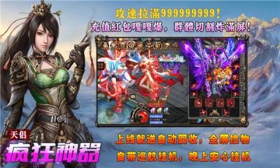 天侣疯狂神器是湖南风云诀网络科技有限公司最新推出的一款变态传奇手游,游戏原汁原味还原了传奇的经典玩法,并且采用了复古的怀旧风格设计,10倍爆率,一键跑图,神宠随便抓,散人也能玩到爽!