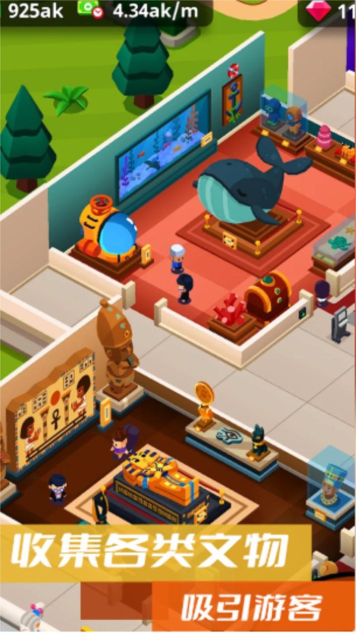 从一个小小展览馆开始,吸引游客进入博物馆,出售门票来,用收入去购买新的超酷艺术品收藏,并建造更多的主题展览馆!