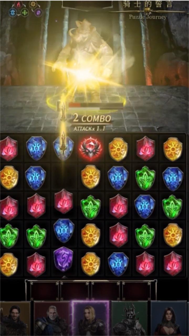 7、然后投入到消除战中,在消除界面可以使用消除技能,打出英雄技能等,在战斗中占得先机或者扭转局势