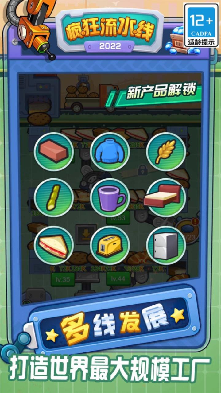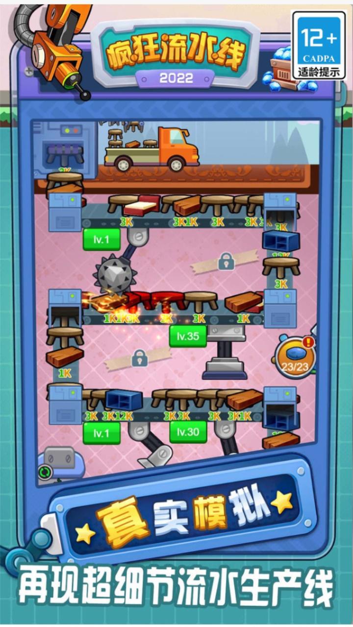 疯狂流水线是深圳文游互娱网络有限公司推出的工厂模拟经营的手游,白手起家,成为上亿资产的老板,真实模拟,再现超细节流水生产线,研发科技,提高机器的效率收入翻倍,多线发展,打造世界上最大规模的工厂,感受管理工厂的成就感。