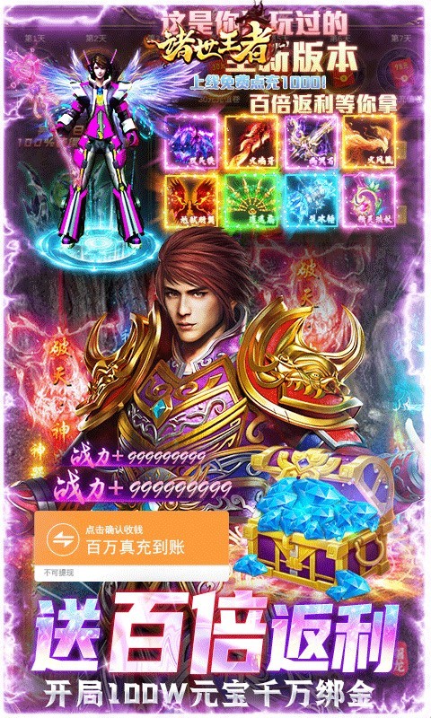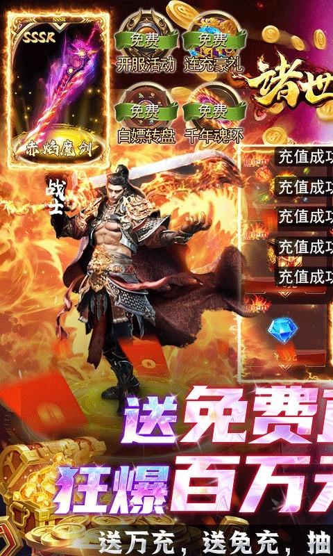 2.升级转生送5万元真充卡无门槛使用,百万真充大礼,全民无限免费送,元宝与GM经验免费拿。