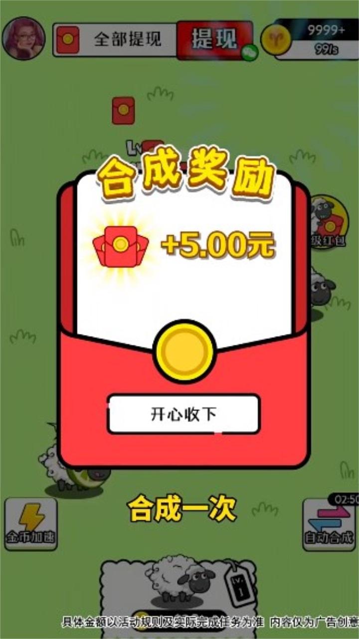 3、合成小羊就能够获取奖励,没有任何的限制条件,轻松就能够获取丰厚的红包奖励!