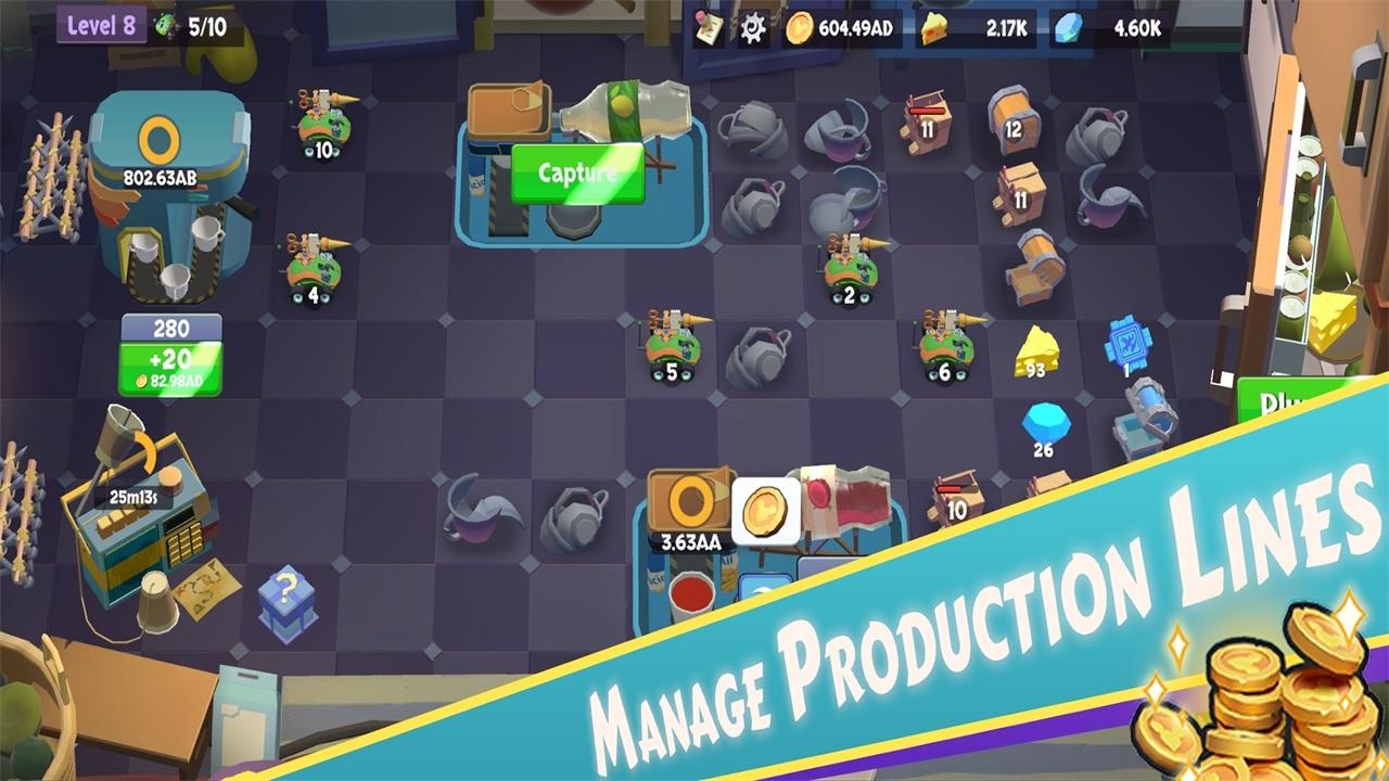 管理生产线:开发、管理和升级机器以赚取更多收入!建立你自己的帝国。