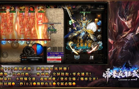 帝豪疯狂武将官方版传奇竞技游戏,专属的资源装备轻松爆出,一切的传奇资源都靠玩家轻松打怪爆出,非凡刺激得劲竞技游戏感受,一秒无限刀,专属地区必爆大量的资源奖励,免费获取大量的奖励,自动挂机竞技,回收大量装备,全屏轻松释放大招,快速拾取游戏道具奖励,0氪金轻松通过所有传奇关卡,趣味闯关竞技,非常值得去尝试的传奇竞技游戏。