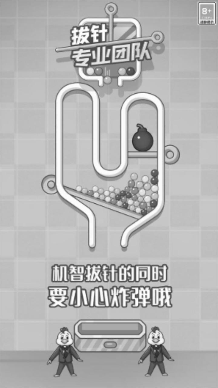 游戏过程中会遇到随机出现的炸弹,必须要小心它,巧妙利用机关躲避炸弹并过关。原理很简单,重力将球拉向管道,但是别针挡住了路。