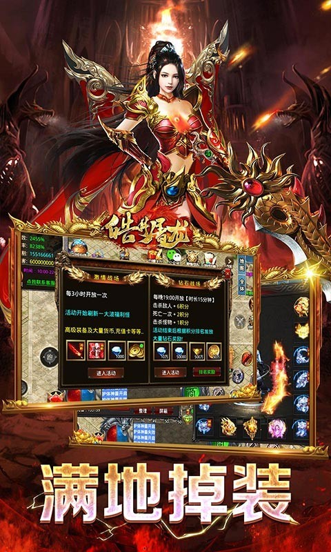 1.战力轻松提升,无限资源随意爆,快速称霸传奇全服,散人为王。