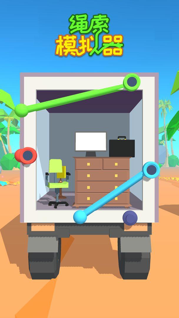 《绳索模拟器》一款休闲益智类游戏,放松大脑,你需要以正确的方式连接皮带以防止商品掉落。游戏以可爱多彩的2D画面,游戏关卡的设置非常巧妙。每个关卡都是相互独立的,,寻找隐藏的奖品并解锁新关卡!这款游戏首先要冷静的思考,对整个场景有个大局上的认识,再构思一个大概的路线尽量用上每一个机关,因为设计者不会给你没用的机关。
