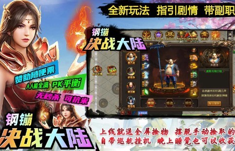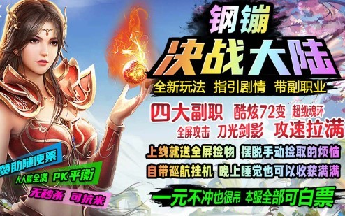 钢镚决战大陆传奇竞技游戏,单职业传奇竞技游戏,激情竞技,全新的传奇竞技剧情玩法,炫彩传奇皮肤,多变刺激竞技,辅助任务和主线任务,剧情副本非常丰富,上线全屏轻松拾取散落的资源道具,无限赞助传奇。轻松秒杀,一刀出奇迹,pk激烈刺激,各类资源道具可以去商城交易会所进行交换兑换,非常值得去尝试的传奇竞技冒险游戏。