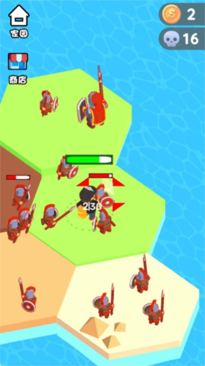 使用金币雇佣战斗兵,随玩家前去战斗场地战胜敌人,还可以使用金币升级血量和战斗武器,以及让雇佣兵变得更加强悍,为你抵抗敌人攻击!