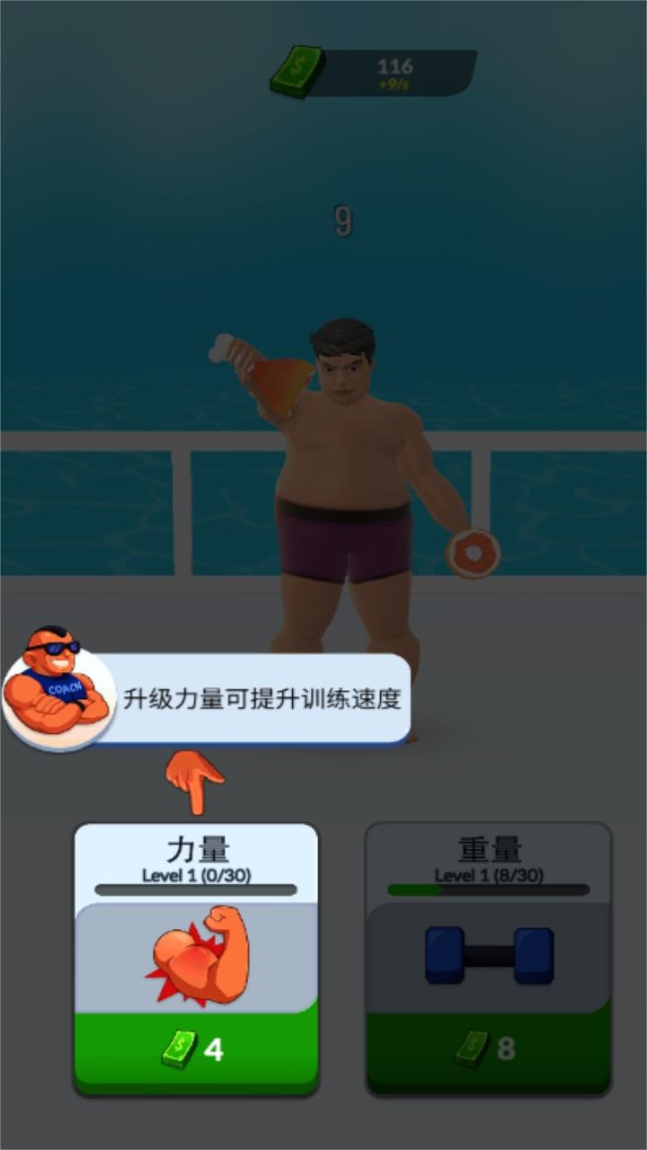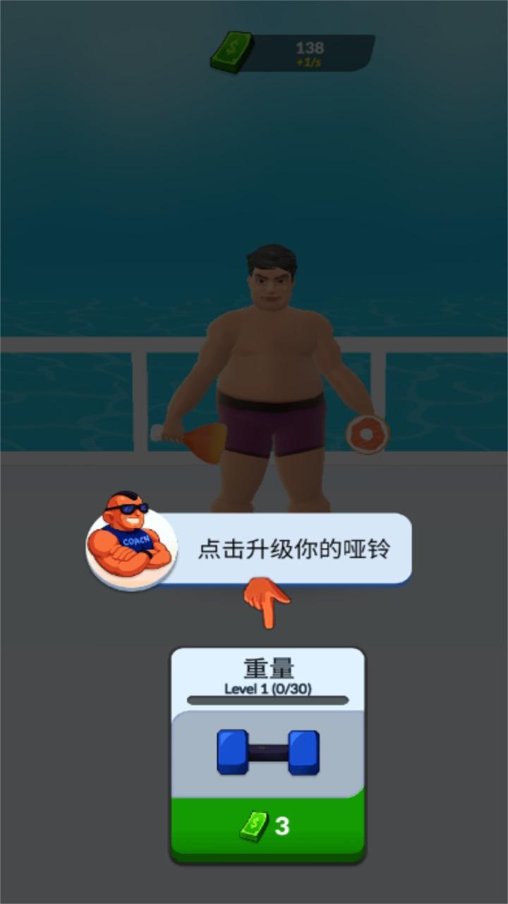 3、操作小胖来进行游戏,你要做的便是帮助他瘦身,使它从一个胖子变成一个型男。