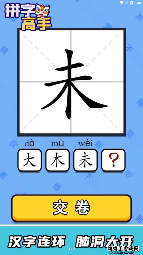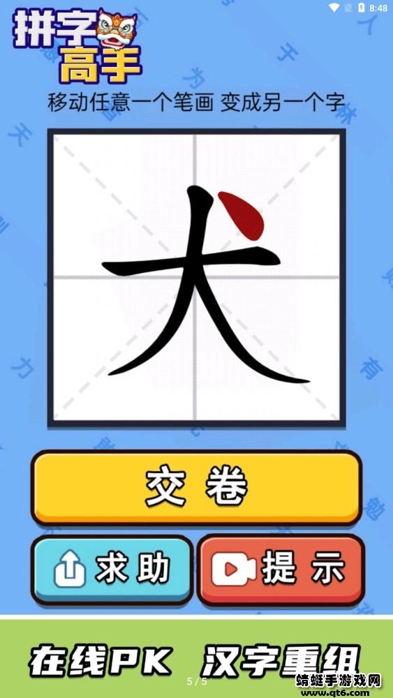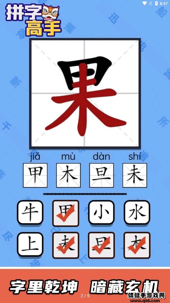 拼字高手小游戏这款游戏内玩家们可以体验到中华汉语文字的博大精深之处,玩家们需要对应每个关卡中,答案的要求,根据零散的碎片,来拼凑出一个完整的汉子,有需要旋转,拖动等超多操作,非常的值得玩家们休闲之余体验。