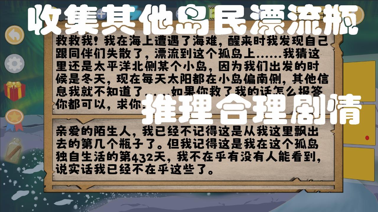 泊赢瓶游戏中玩家们以外的流落在了一个神秘的小岛上,但是在这里却拥有一个独特的机制,游戏中玩家们可以随机的获得各种漂流瓶,在瓶子中你可以收集到如何离开这座岛屿的情报和一些物资,最有趣的是这一切都是随机的,很有可玩性。