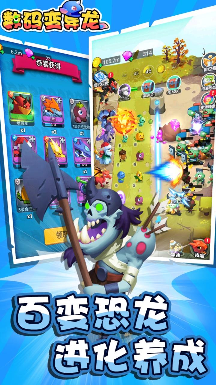 数码变异龙是深圳文游互娱网络有限公司推出的一款塔防游戏,孵化合成恐龙抵御怪兽入侵,这款挂机塔防,放置合成的游戏确定不来玩?轻松建设,欢乐竞技,丰富地图,策略对抗,是一款拥有百变恐龙进化养成游戏。