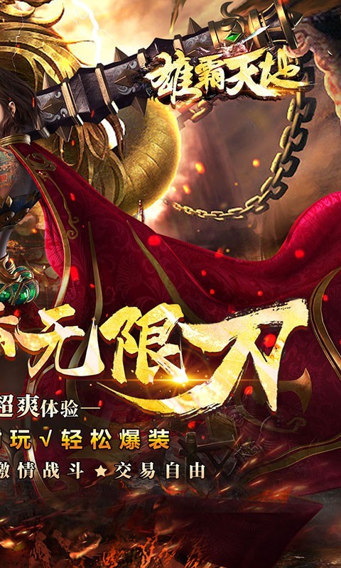 激情的雄霸天地传奇。极速爽爆版版本,全新的传奇世界,没免费的首充,天天扶持礼包,新地图等待玩家去尝试尝试,热血刺激的沙城攻沙竞技,经典永恒的传奇,兄弟共同组队去冒险,建造千古的传奇霸业,多人同屏竞技,非凡的传奇体验感受,开启刺激的传奇征战之旅,炫酷的操作手法,非常公平的传奇pk,终极攻速,极限拉扯,新旧版本结合,非常值得去尝试的传奇竞技游戏。