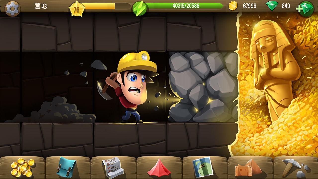 戴吉的冒险手游采用了非常简单的2d游戏画面,你可以操控我们的主角在矿产中不断地挖矿进行冒险,多样的玩法模式和探索方法让你在游戏中不断的去挖掘真正的宝藏,闯关之后可以获得更多的奖励。