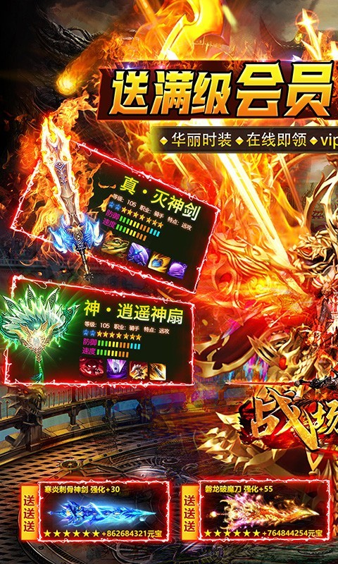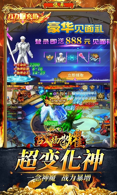 1.上线送限时神权GM特权,每日礼包领不停。充值比例1:500!上线送VIP10直升卡!