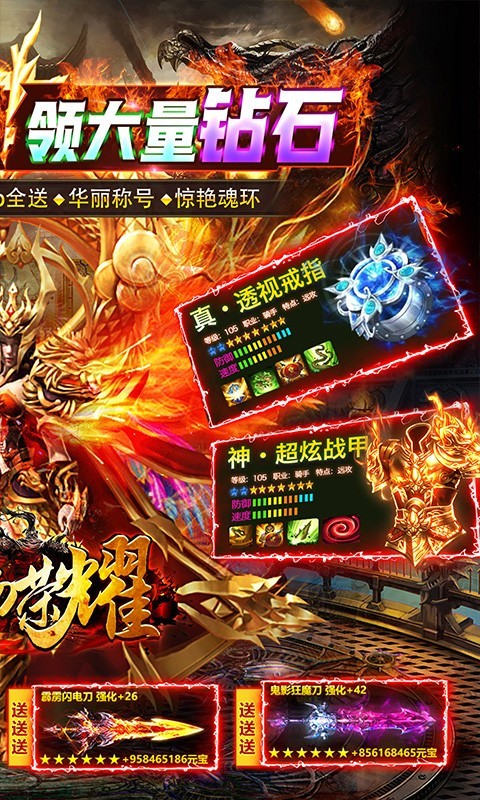 2.上线12级送充值工具,每日免费5次充值机会,充值多少看手速。0元购全额返还!