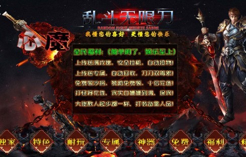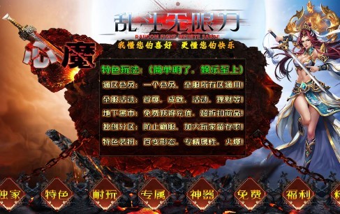 心魔乱斗传奇,激情无限无限刀版本,专属的特色传奇,独家特色玩法,非常长久耐玩的传奇,大量的专属资源元宝和神器,轻松白嫖奖励,大量的免费福利,经典的明了的游戏介绍,全网独家升级版本,多种类型轻松尝试,复古游戏元素风格,经典中的经典,多种趣味元素融合,会员特权全服都能使用,非常值得去尝试的传奇竞技游戏。