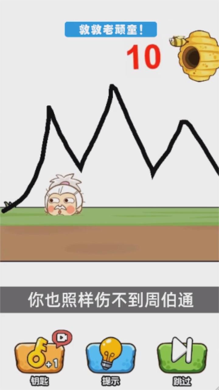 救救老顽童是广州耀火网络科技有限公司推出的一款画线拯救老顽童的游戏,每一个关卡的内容都是不同的,我们要做的就是画线保住老顽童,避免老顽童被蜜蜂蛰了。是一款玩法多多,画线自由的闯关游戏,不管上班累了还是学习累了都可以来这款游戏放松下。