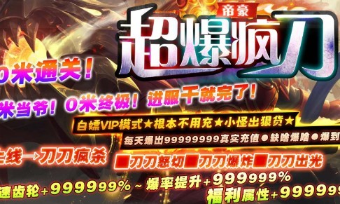 帝豪攻速竞技传奇,超爆资源。无限刀传奇竞技版本。刀刀激情暴击,刀刀关注,刀刀爆率巴扎,小怪也能轻松出资源,极限感受,急速爆资源,宝刀初九,趣味寻宝过程,非常多的真充奖励玩法,精彩刺激的打斗玩法,很多免费游戏奖励。非常值得去尝试的多元玩法,无限的传奇青春,展现传奇实力,散人的传奇世界。非常值得去尝试的传奇竞技游戏。