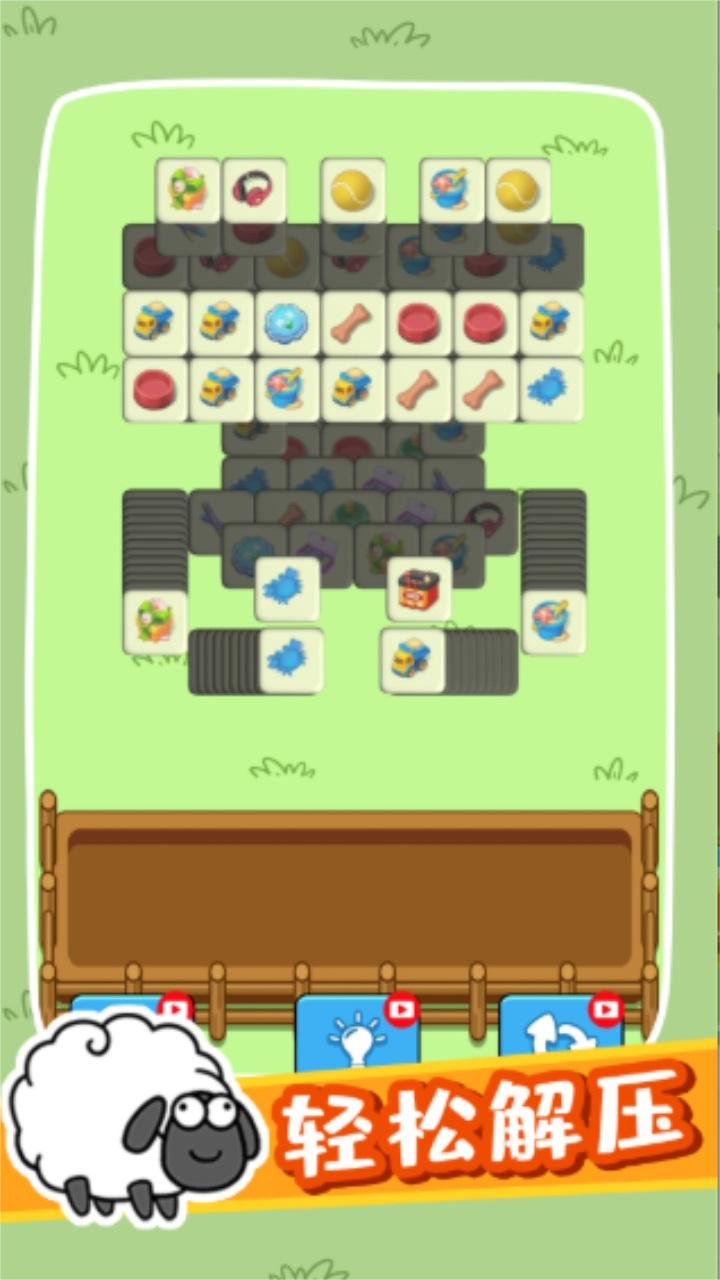 4、超难通关的消除小游戏,通关率不到0.1%。玩家需要从上面方块选择三个一样的进行消除,消除所有方块即可通关。可爱的画风,再搭配上魔性的音乐很上头。据说通关的都能达到和爱因斯坦一样的IQ,快来加入羊群吧!