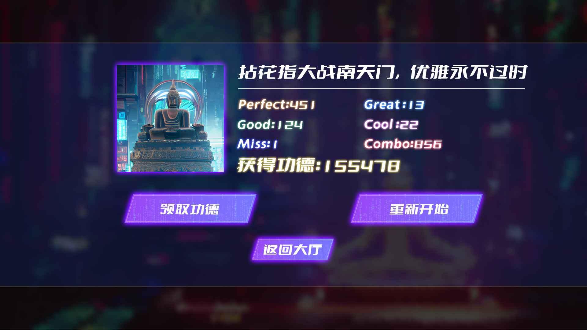 节奏木鱼是以最近很火的敲木鱼游戏为灵感的节奏游戏,这块游戏有着赛博朋克的风格,玩家将根据音轨来进行敲击,空灵的木鱼声音可以净化您的心灵,提升您的功德,玩起来非常的有创意,看看千变万化的木鱼能够给您带来什么样的惊喜吧。