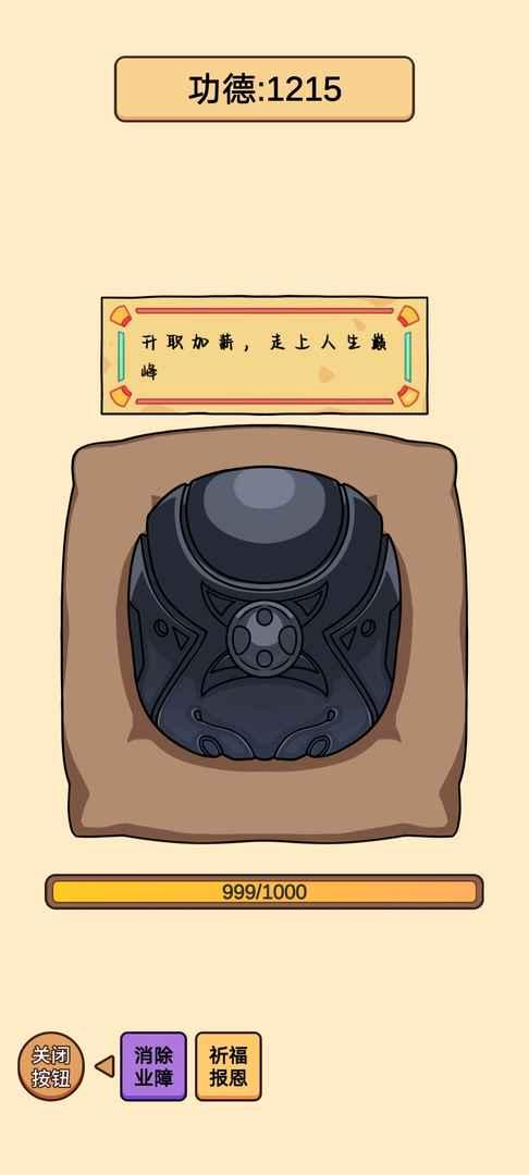 就是一款普普通通的敲木鱼游戏,游戏的主要玩法就是通过不断点击屏幕中间的赛博木鱼来积攒功德点。不过相比于之前的《赛博木鱼》