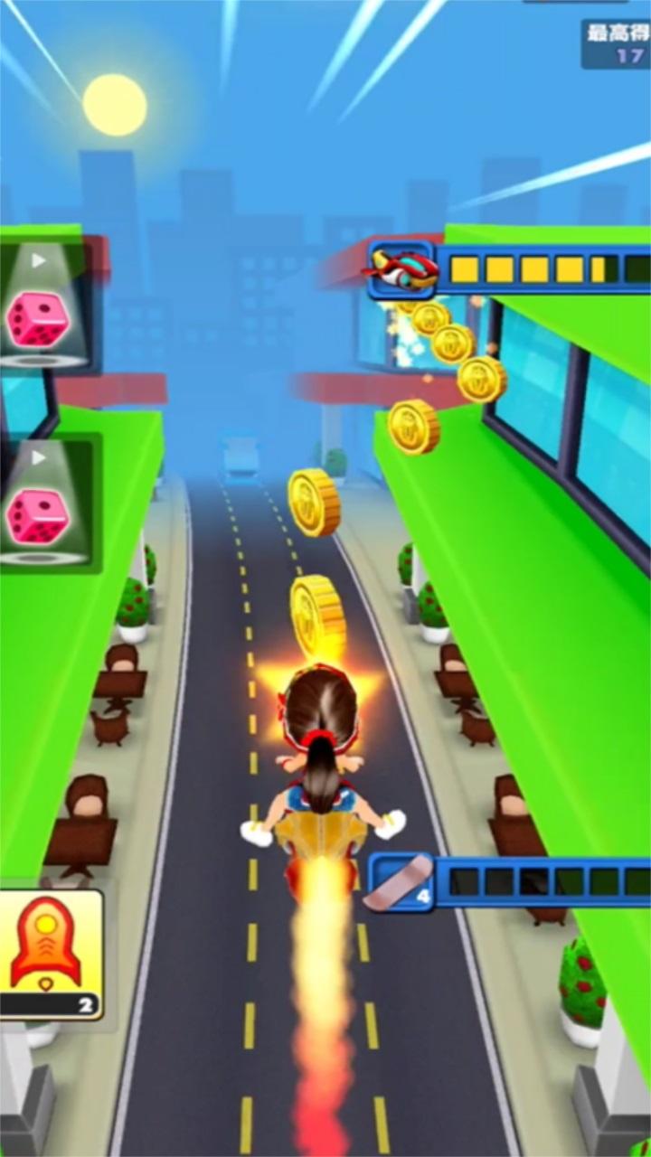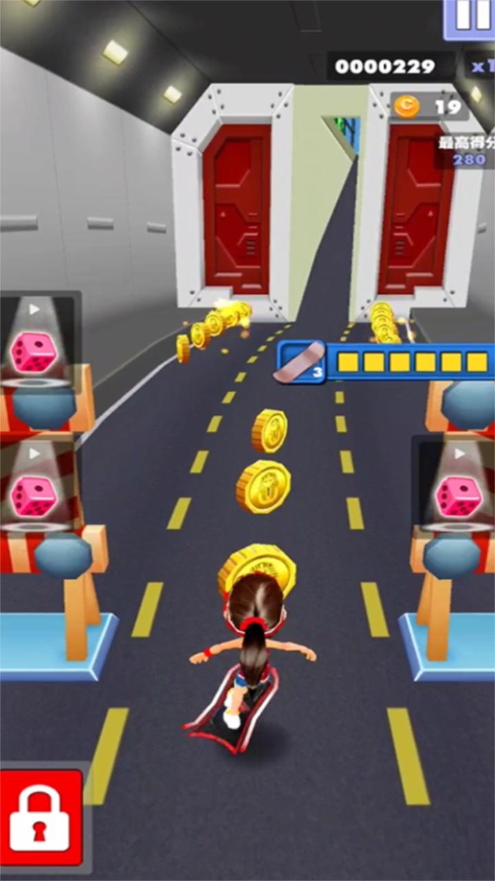 4、是一款刺激的跑酷游戏,经典跑酷玩法,躲避追捕和迎面而来的地铁。左右滑动控制人物躲开障碍物,向上滑动,人物跳跃,向下滑动,人物翻滚,双击使用滑板道具,极限冲刺,还有更多道具带你解锁,快来体验吧!