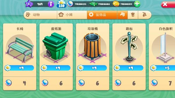 装饰品中包含了各式各样的座椅.花草和道路基础设施,也受限于动物园的等级,另外除杂.完成任务都可以加快动物园等级提升。