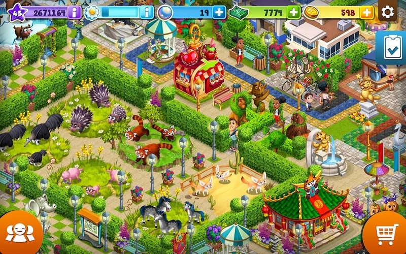 - 构建并升级动物便利店.景点和商场!利用多彩的装饰.道路和人行道来装点你的动物园,以吸引游客,赚取利润!