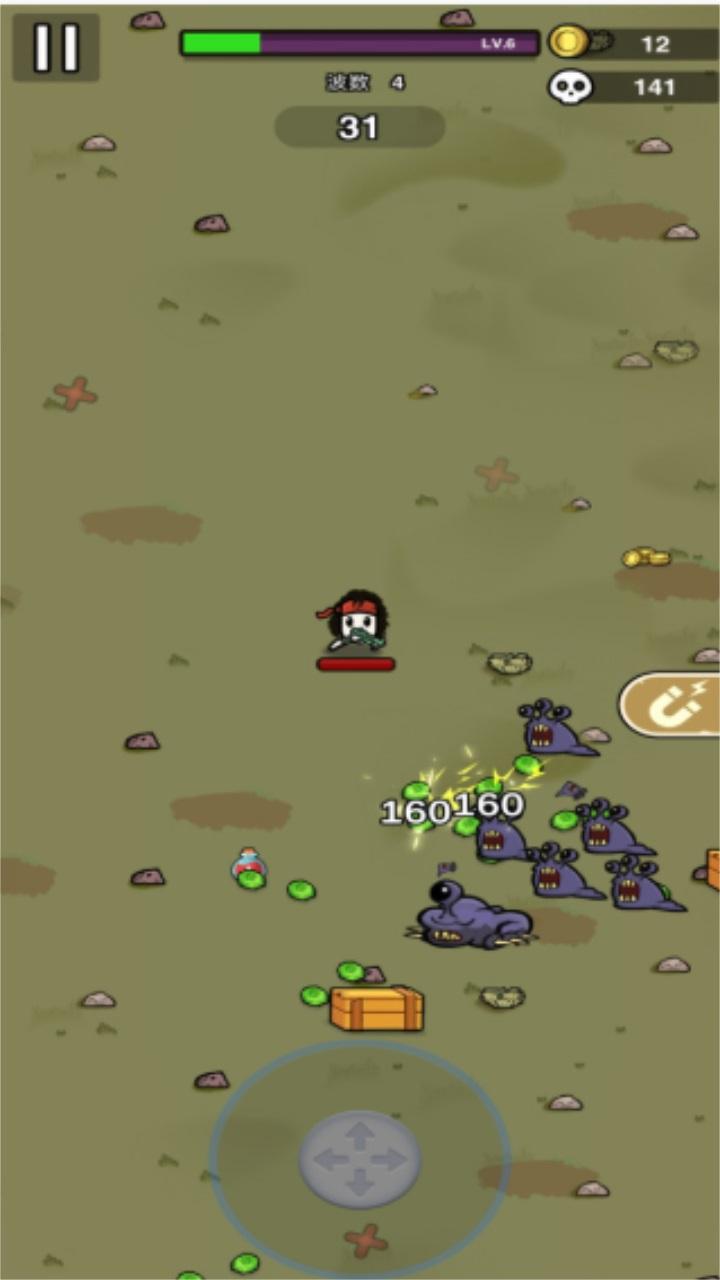 收集材料以获得经验,并在一波又一波敌人袭来的间隙从商店获得道具