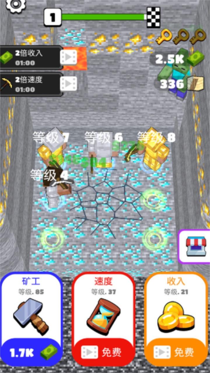 并用这些矿石换取金币。不要小看金币。金币可以帮助你提升汽车和矿工的等级。