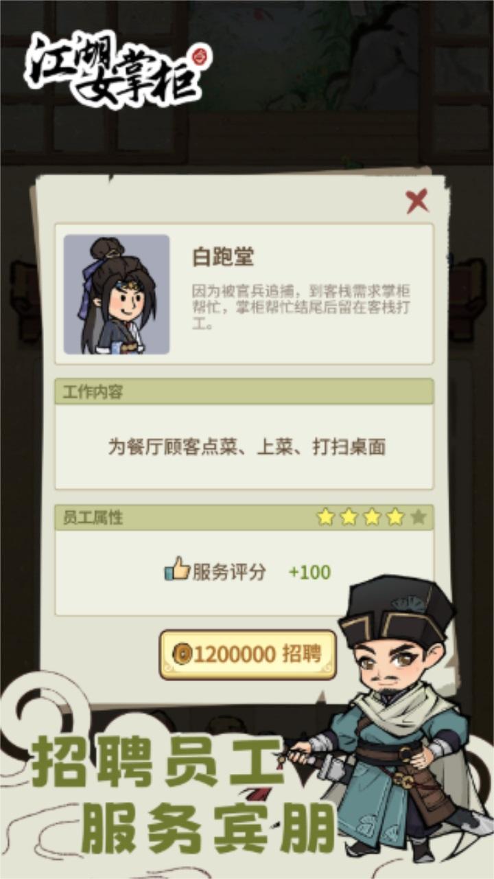 2、多种客栈布局,任你装修客栈客栈,搭配建筑,美化设施。招聘多种员工,满足客栈不同的经营需求。花样百出菜品,精心研发,吸引不同顾客。