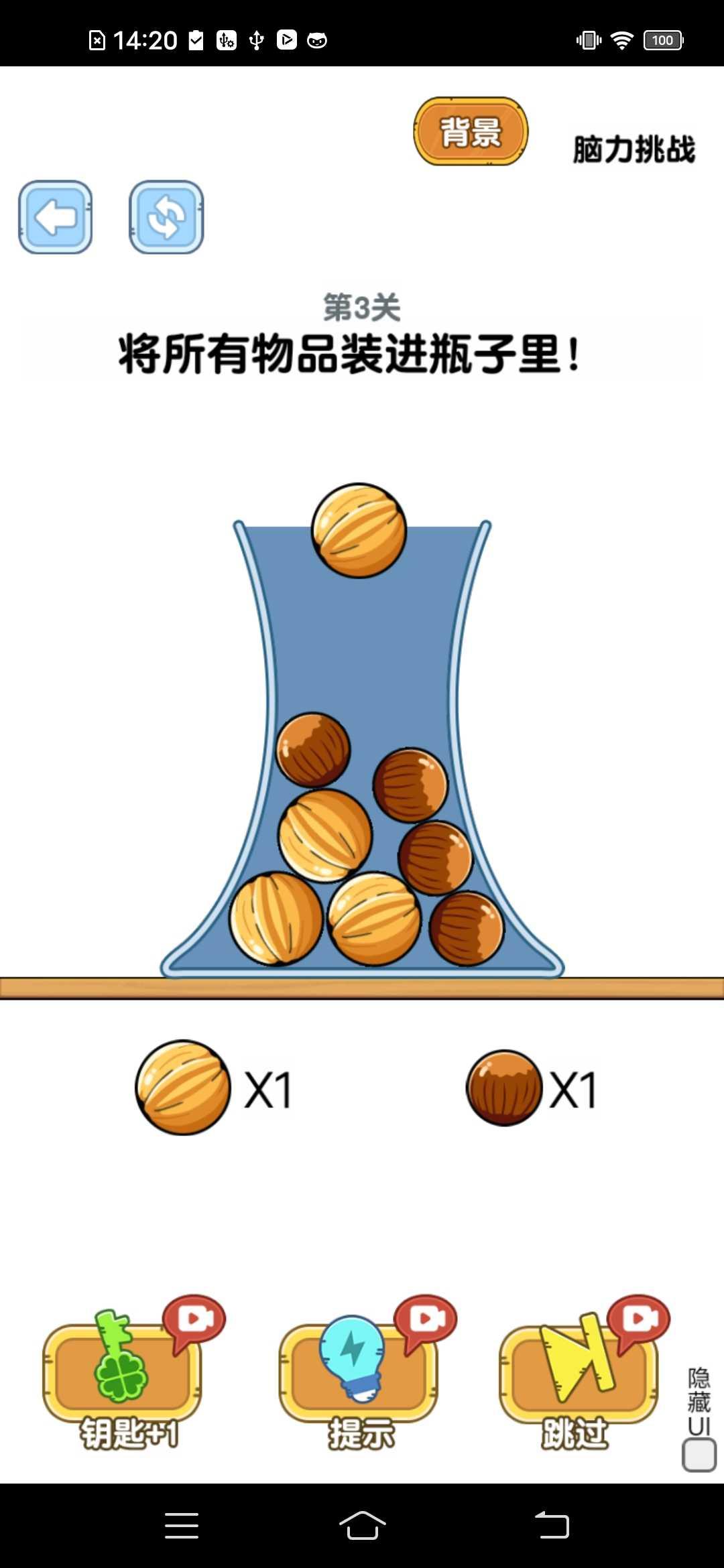 1.将所有的物品全部装进瓶子里面,这样你需要快速的完成挑战。