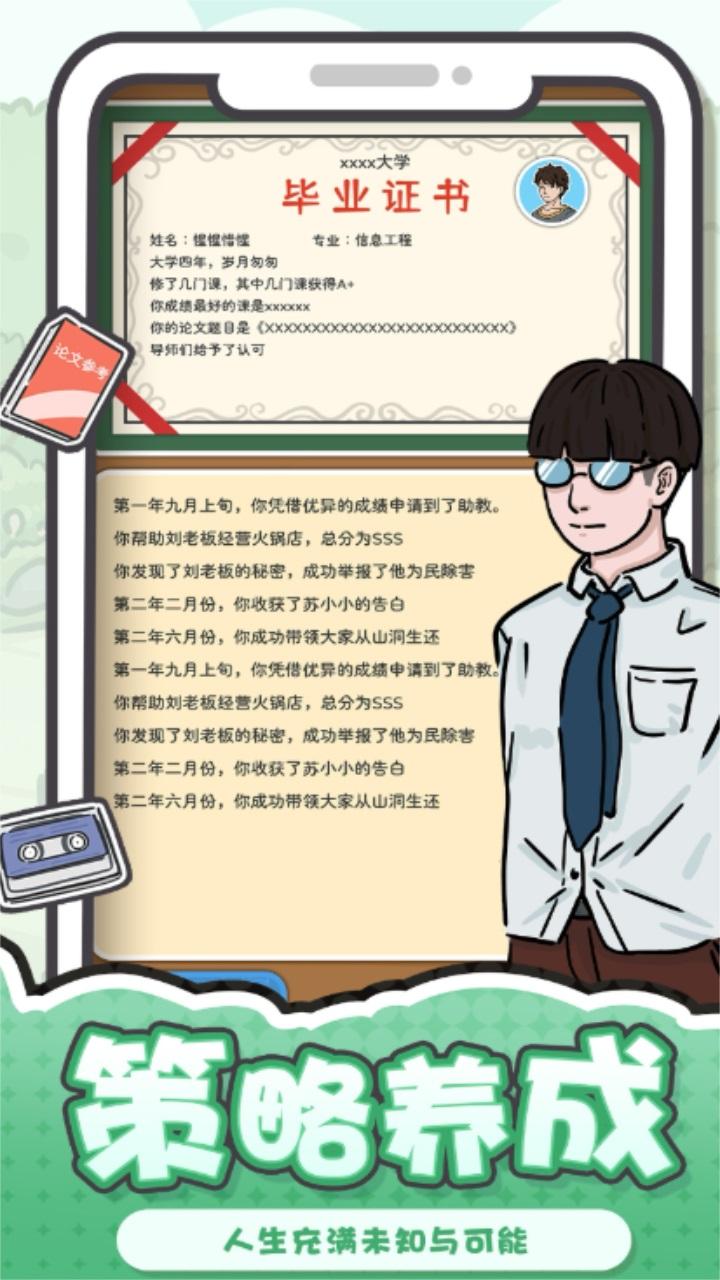 回到大学,你会如何选择?是一款模拟大学学习和社交的休闲游戏,玩家将扮演一名大学的大一新生,体验大学生活中的各种乐趣。