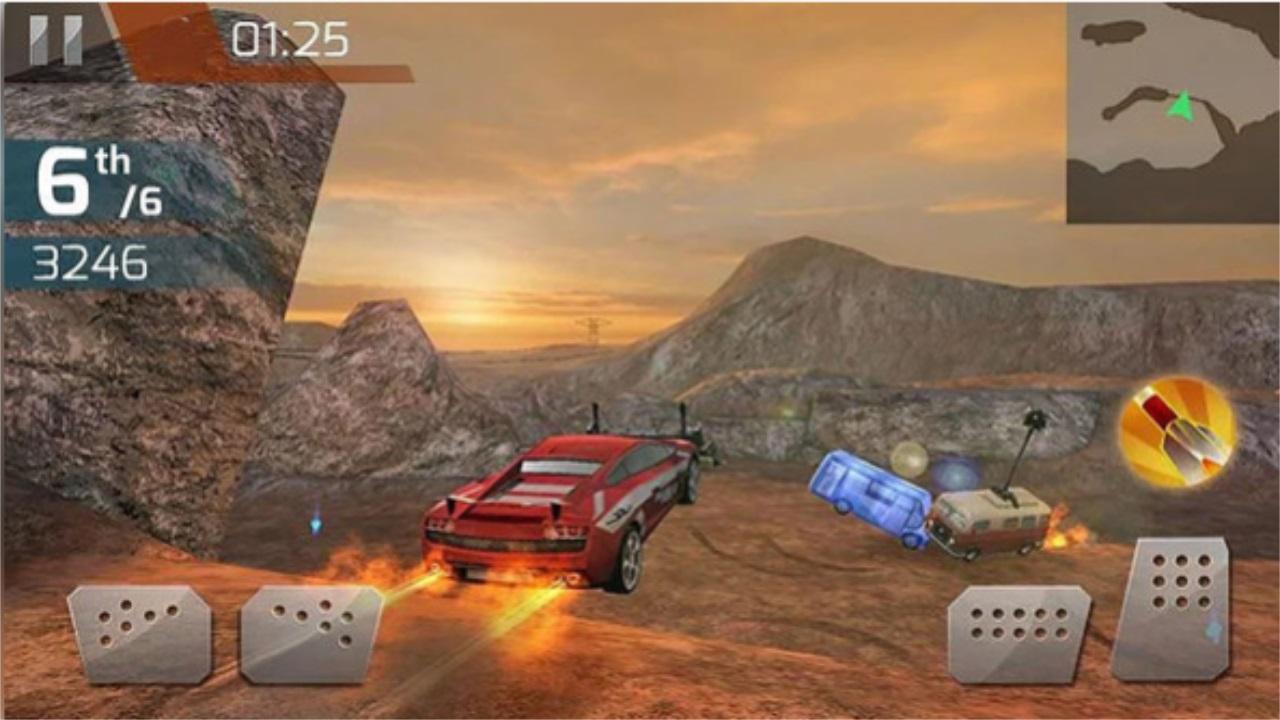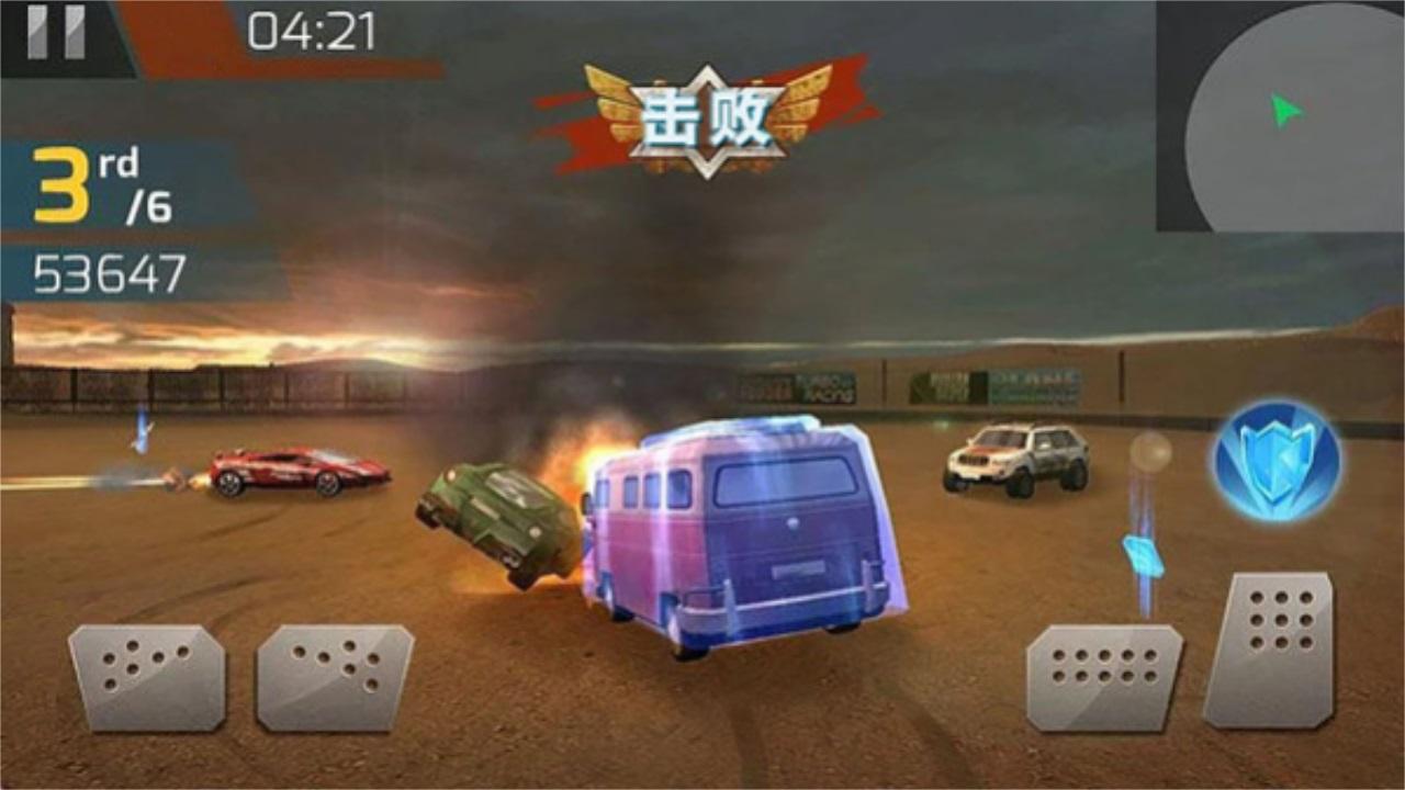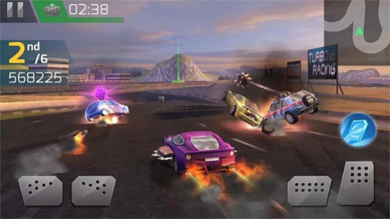 2、游戏中玩家将驾驶赛车在赛道上不断撞击对手,边竞速边将对手的赛车全部摧毁。