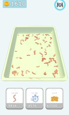 养蚯蚓是一款模拟养蚯蚓的游戏,放置玩法轻松简单,玩家需要给予蚯蚓充足的食物和水分,您喂的食物价值越高,那么蚯蚓长得就越快,在蚯蚓生长过程中会有很多金币出现,使用这些金币就可以不断的去升级食物种类了。
