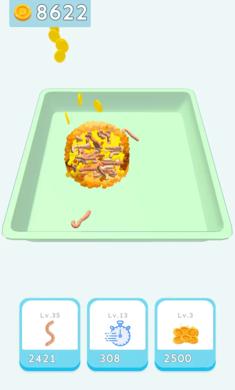 通过不断地喂食,游戏内的那只蚯蚓将会越来越大;