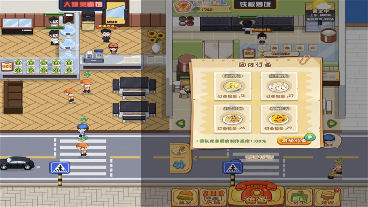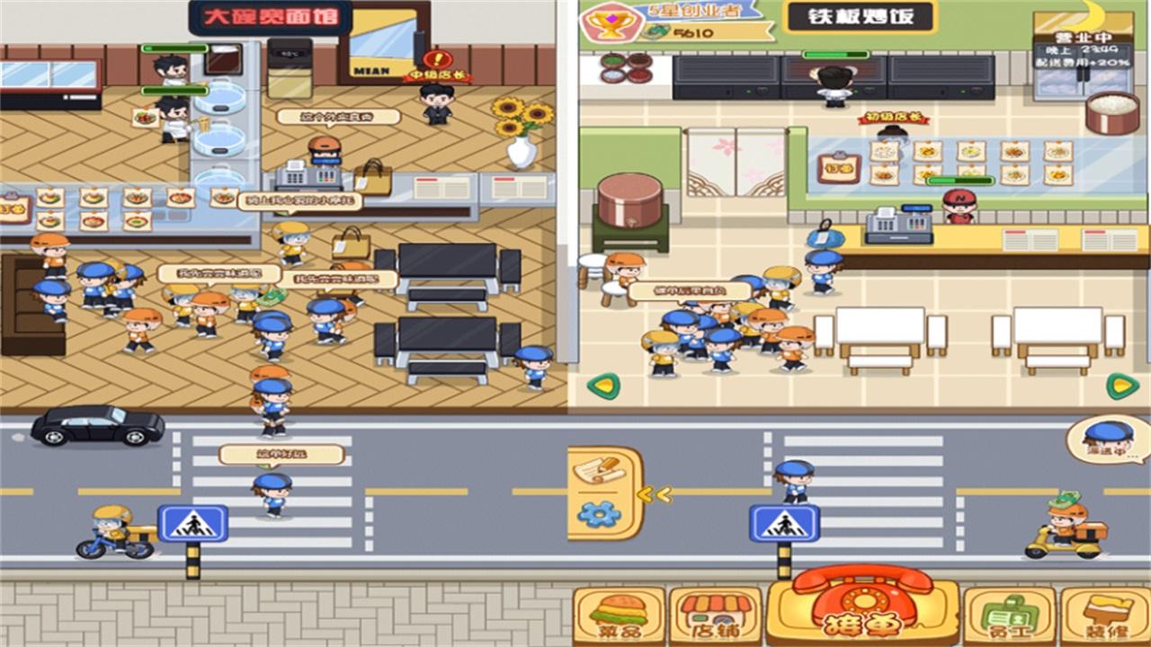 2、不断扩张你的餐厅经营规模,接取更多,成为外卖大亨。