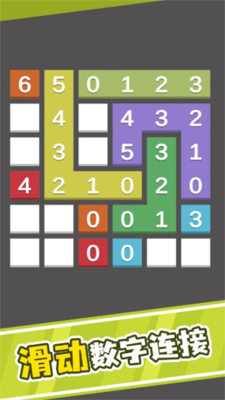 先点摁住一个数字,划动画出线条,连接至另外一个相同的数字。 将所有相同数字连接完成获胜。