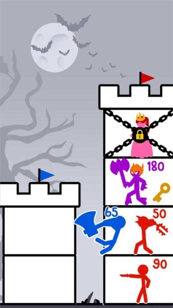 4、准备好与顶级火柴人战斗,击败怪物和敌人。在途中赚取金币并充电,变得强大并尽可能高地建造塔楼。在英雄战争中合并并消灭敌人,升级以解锁无数可定制的皮肤!