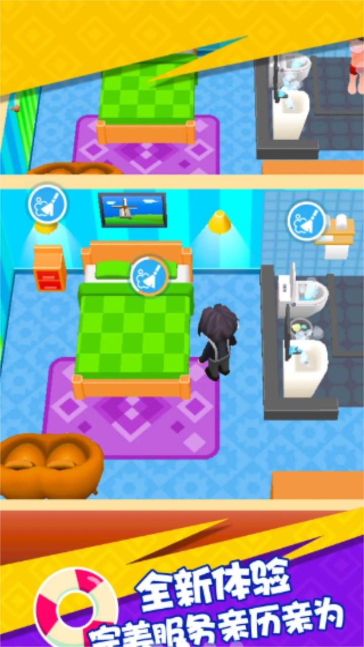 请确保您的酒店拥有所有服务设施,并强化您的员工,从而获得最大化利润。随着酒店完善,您还能解锁更多不同风格的酒店!